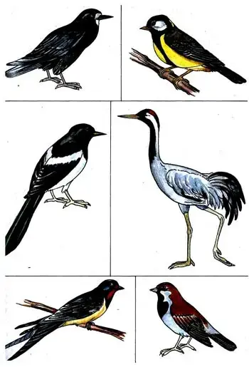 - Эти птицы спорят, кому улетать в тёплые края, а кому оставаться. Помоги им разобраться в этом. Назови птиц.