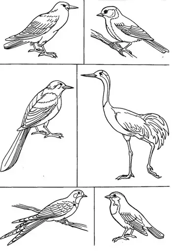 - Раскрасьте птиц точно по образцу.