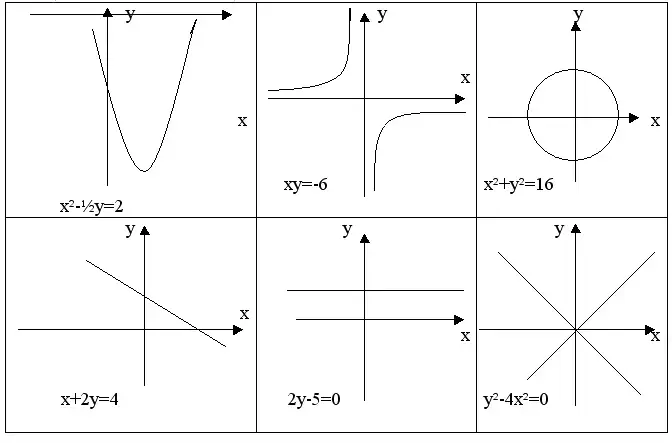 Рассмотрим таблицу, в которой изображены некоторые известные нам графики и записаны их уравнения.