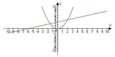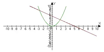 Если бы мы смогли построить график функции у=х?+х-5, то сумели бы найти и корни уравнения х?+х-5=0, - это абсциссы точек пересечения графика с осью х. Однако строить графики функций подобного вида мы не умеем. Выход из положения: перепишем уравнение в виде х? = -х + 5. Это позволит нам воспользоваться графиками функций у=х? и у=-х+5, которые легко построить.