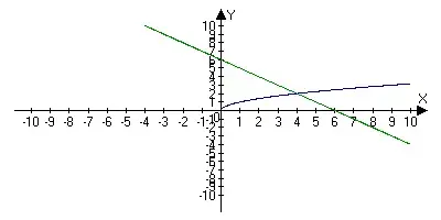 6. Они пересекаются в единственной точке (рисунок 2), абсцисса которой равна 4. Значит корень уравнения - число 4.