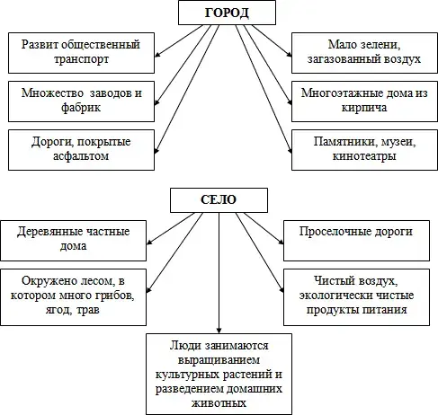 - Проверяем. Какие отличительные особенности в жизни города вы отметили? А в жизни села?
