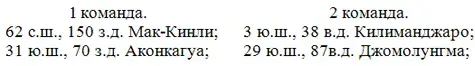 Команды, используя шкалу высот и глубин, расставляют горы по высоте: Уральские, Кордильеры, Кавказ, Анды, Сихоте-Алинь, Алтай.