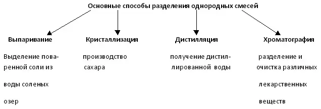 Схемы: "Примеры смесей", "Способы разделения смесей".