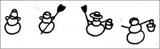 Ира, Павлик, Гена и Аня слепили по снеговику. Снеговик Иры и Павлика - с метлами. Снеговик Ани и Павлика - с ведрами. Подпиши: где чей снеговик, используя первые буквы имен.