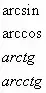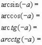 Мы получили соотношения для арккосинуса, арксинуса, арктангенса, арккотангенса.