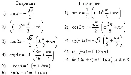Мы вывели формулы для решения простейших тригонометрических уравнений: