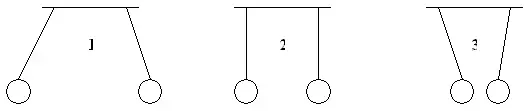 3. Три пары легких шариков подвешены па нитях. Какая пара шариков не заряжена?
