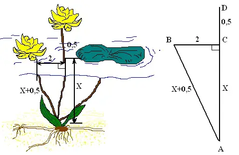 Выполним чертёж к задаче и обозначим глубину озера АС =Х, тогда