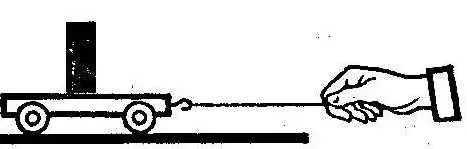 4. Что произойдет с бруском, если резко дернуть тележку за нитку?