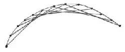 Дуги, спирали, завитки прошиваются по тем же правилам что и окружности. Для прошивания нужно нарисовать дугу на изнаночной стороне картона, разделить на отрезки. Длина отрезков может быть различной, в зависимости от назначения элементов, но чаще всего в рекомендациях советуют делать длину отрезков одинаковой. Данные элементы используются для изображения хвостов птиц, сугробов, волн, облаков, листьев, декоративных элементов в различных композициях. Примеры работ можно посмотреть в практическом пособии по изонити.