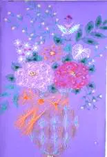 При выполнении этой работы сочетается вышивка отдельных элементов, аппликация.