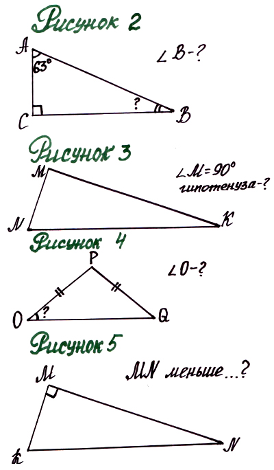 • Какой треугольник называется прямоугольным? • Что такое гипотенуза, катет? • Сформулируйте теорему о сумме углов треугольника. • Перечислите свойства прямоугольного треугольника. • Какой треугольник называется равнобедренным? Какими свойствами он обладает? • Дайте определение внешнего угла треугольника. • Сформулируйте свойство внешнего угла треугольника. • Какие углы называются смежными? • Каким свойством обладают смежные углы? • Какие треугольники называют равными? Сформулируйте признаки равенства треугольников.