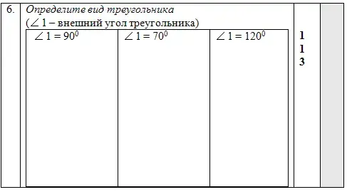 - для каждой парты: ваши углы могут быть углами равнобедренного, прямоугольного тупоугольного треугольника? и т.п.