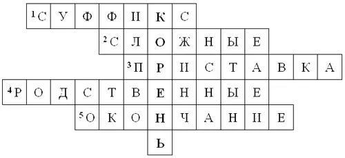 Задание: Запишите в клеточки ответы к указанным словам и сразу вспомните названия частичек слова.