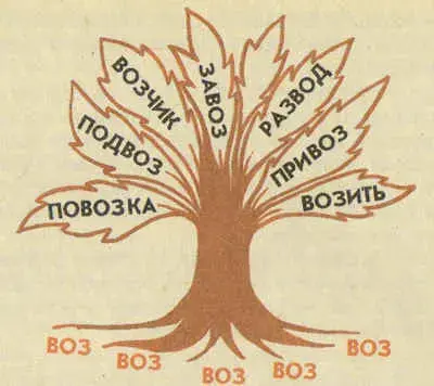 Много - много лет назад появилось на свете слово ВОЗ. Нашли его люди и думают: "Что с ним делать?" А слово это и говорит: "Посадите меня, и я разрастусь в большое красивое дерево". Посадили люди слово ВОЗ, и оно стало расти. Сначала один росток пустило, потом второй, третий… Много ростков появилось от слова ВОЗ. Все они на него похожи, но и своё в каждом есть. Вот какое дерево выросло!