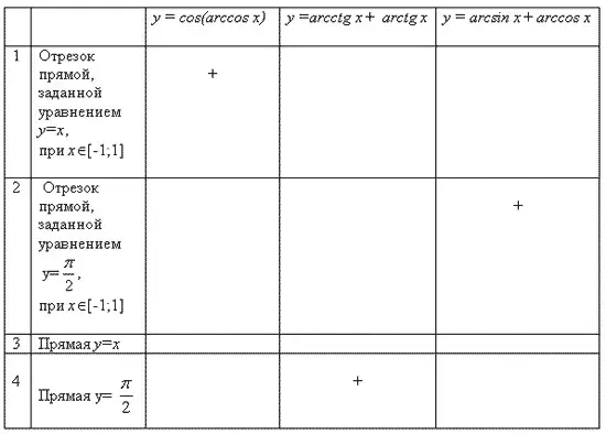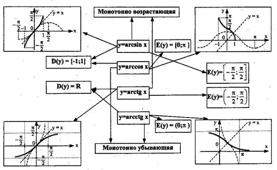 Анализируя ее, ученики повторяют выделенные в ней черты сходства и различия в определениях обратных тригонометрических функций. Учитель обсуждает с учащимися следующие вопросы: Всякая ли функция