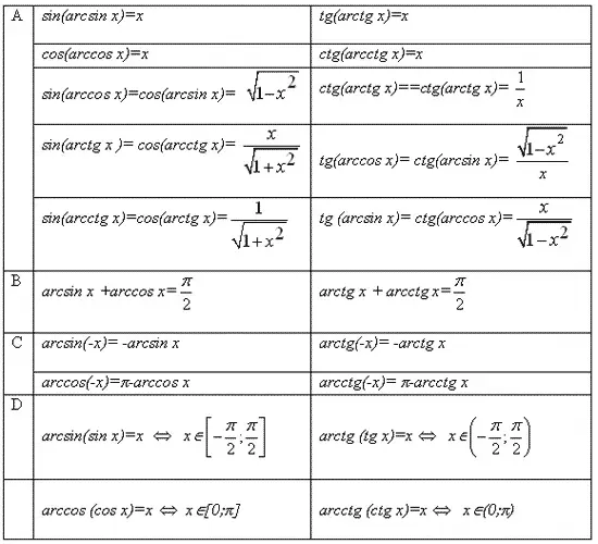 обратные тригонометрические функции ограничены; множества значений арксинуса и арккосинуса представляют собой замкнутые промежутки, арктангенса и арккотангенса - открытые.