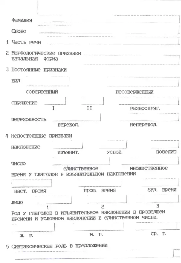 Мы подъехали к острову Морфология. Но попасть туда можно только с разрешения губернатора этого острова - Глагола. Для этого надо выполнить задание на морфологическом тренажёре (с взаимопроверкой). Возьмите тренажёры, впишите в "окошечко" свою фамилию. Посмотрите на доску, где для каждого экипажа указаны слова для разбора. Грамматические признаки этих слов отмечайте в специальных "окошечках" на тренажёре.