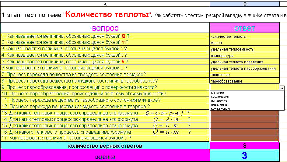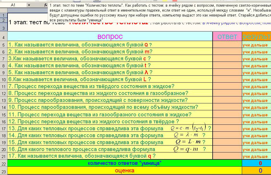 Программированный контроль знаний учащихся с помощью проверочных тестов, составленных в Microsoft Excel