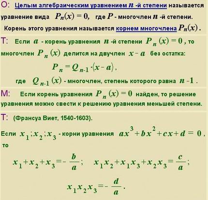 Теме урока: Целые алгебраические уравнения высших степеней.