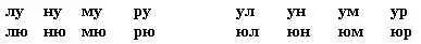 - Обучать чтению обратных и прямых слогов с буквами У, Ю.