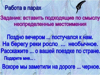 - На что указывают неопределённые местоимения? (указывают на неопределённые предметы)