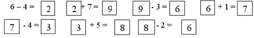 - Что заметили? Верно, ответ предыдущего примера становится началом следующего. Такие примеры называются "круговыми". Ответ последнего должен быть началом всей цепочки: