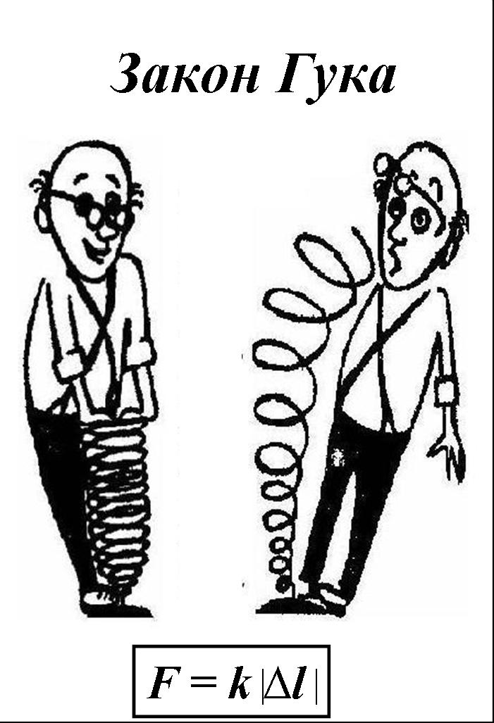 Ученики. С силой упругости, которая определяется по закону Гука, в случае упругих деформаций растяжения или сжатия: Fупр. = k ·÷ ∆l÷ и Fупр = Fт = mg, если тело, вместе с опорой или подвесом покоится или движется прямолинейно и равномерно.