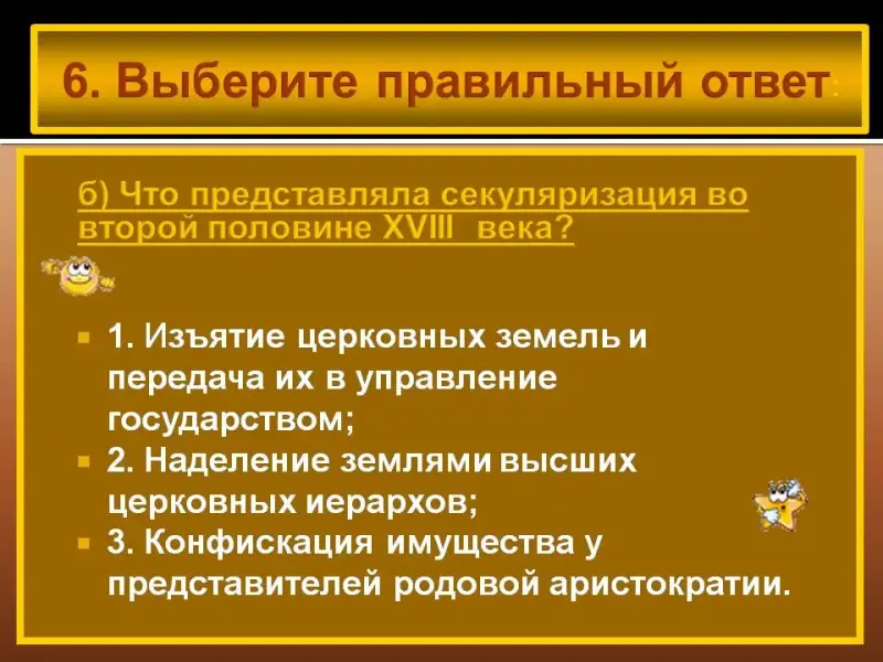 22 сентября 1762 года была коронована и одна из первых задач, которая стояла перед Екатериной - устранение возможных соперников. 34 года правления - говорит о стабильности империатрицы, пришедшей к власти. Мы завершили таблицу.
