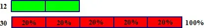 Наибольшим общим делителем чисел 30 и 12 является число 6. Причём в тридцати шесть содержится 5 раз, а в двенадцати - дважды. Поэтому изобразим 30 отрезком из пяти частей, а 12 - отрезком из двух частей.