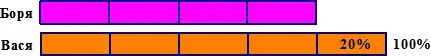 Исходя из второго условия отрезок "Боря" нужно изобразить из четырёх частей, а "Вася" - из пяти.