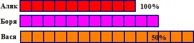 Почему ответы различны при одном и том же рисунке? Запомним это: важно с чем сравниваем, иными словами - что принимаем за целое или 100%.