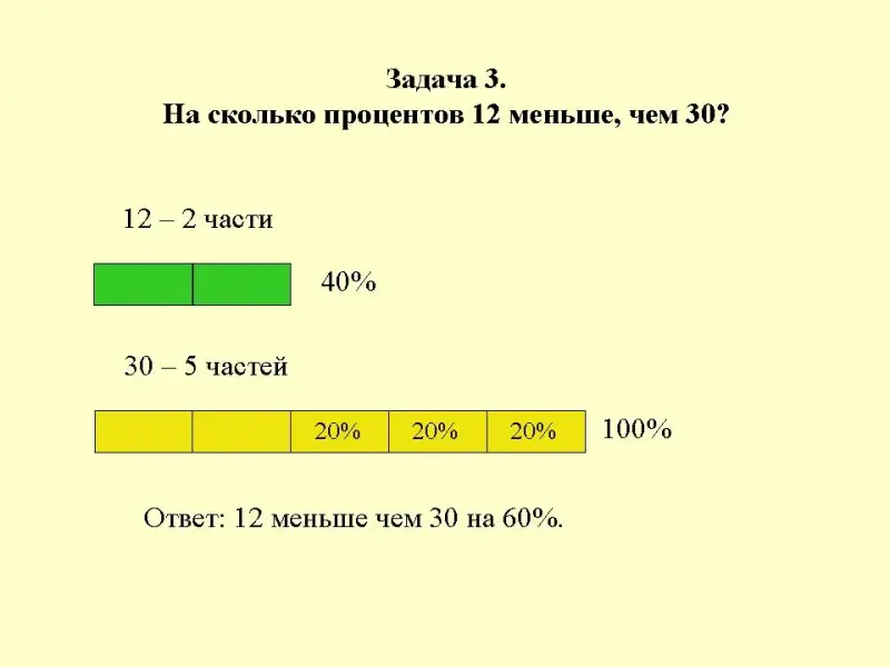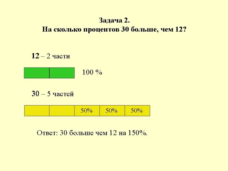 Задача 3. На сколько процентов 30 больше, чем 12? На сколько процентов 12 меньше, чем 30?