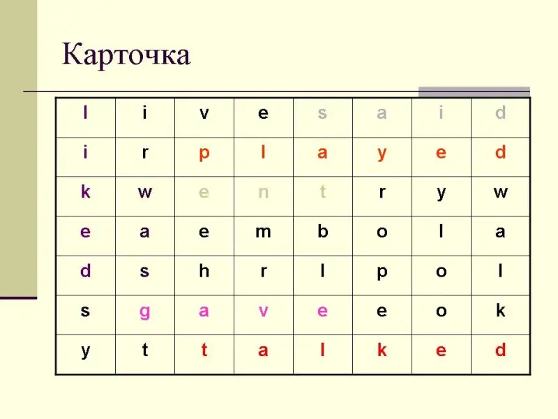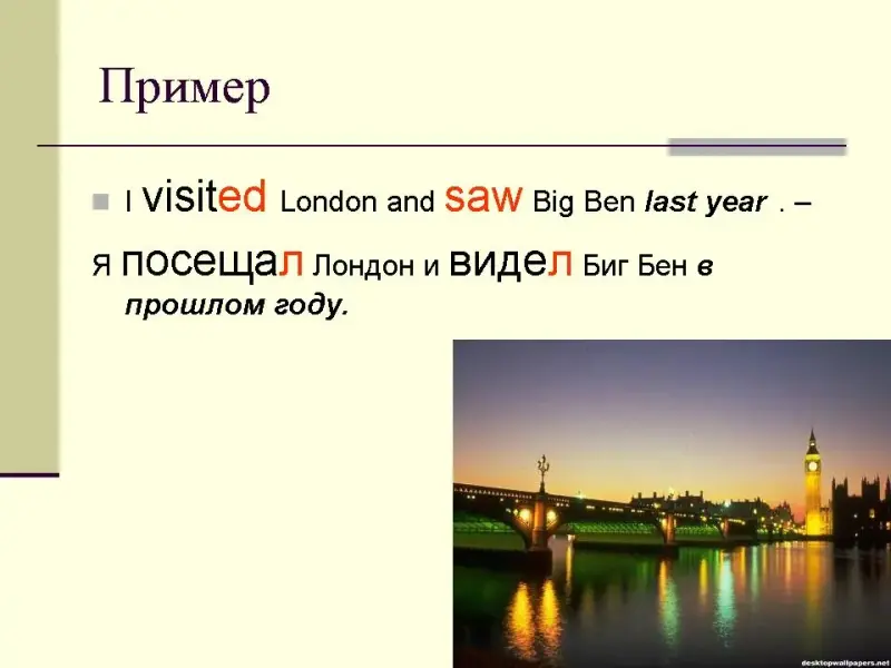 - обучающая: обучение распознаванию и использованию простого прошедшего времени;