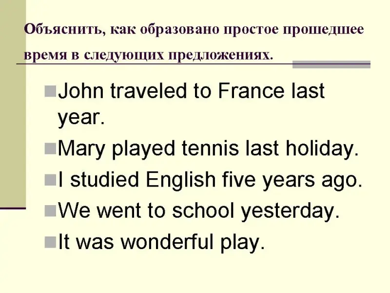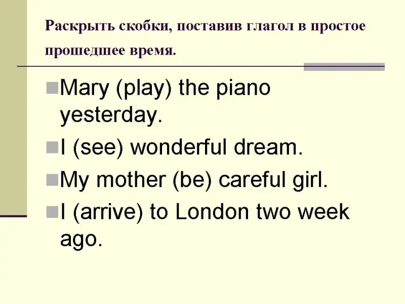 4) Составить собственные предложения в простом прошедшем времени.