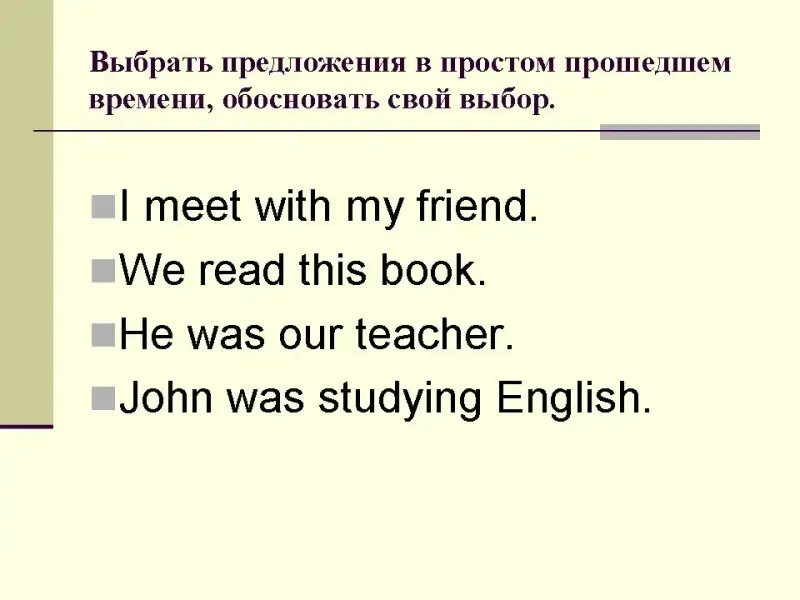 2) Выбрать предложения в простом прошедшем времени, обосновать свой выбор (Слайд 9).