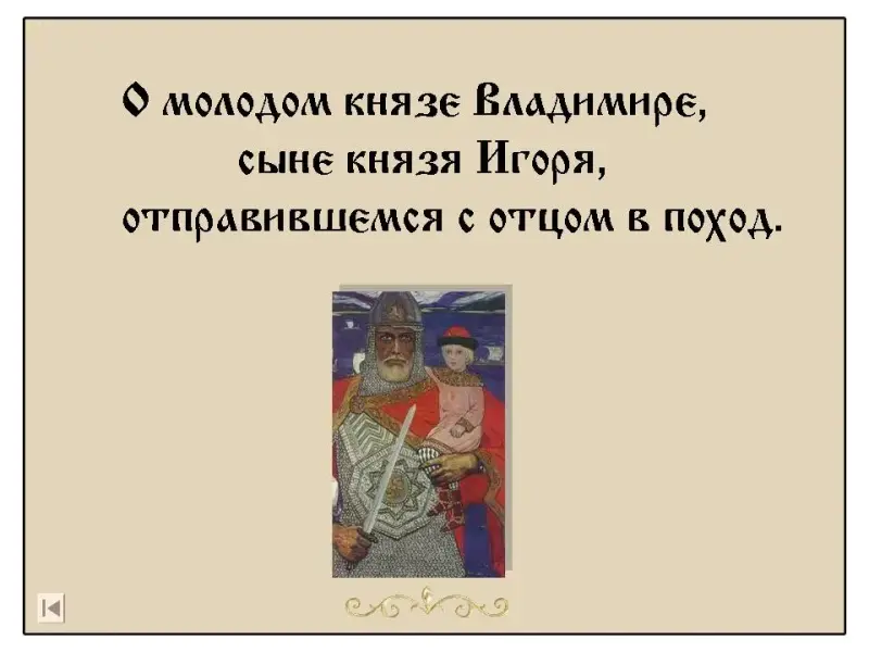 «Любовь к родной природе - один из важнейших признаков любви к своей стране…». Это слова писателя К. Г. Паустовского, непревзойденного мастера описания русского пейзажа, писателя, сердце которого было переполнено нежностью и любви к родной природе. Кто может не согласиться с ним? Нельзя любить Родину, не живя одной душой с жизнью любимой березки. Нельзя любить весь мир, не имея родины. То, что мы порою принимаем за «чистую» лирику природы, пейзажные зарисовки, на поверку оказывается особым проявлением гражданственности, патриотизма, без которых невозможны бережное отношение к природе, активность человека в ее защите, сохранении и приумножении ее богатств. Не только прекрасная русская поэзия развивает выше перечисленные качества у учащихся, но и значимые произведения древнерусской литературы такие, как: «Слово о полку Игореве» (Урок - презентация «Слово о полку Игореве» - энциклопедия русской жизни 11-12 веков). Используемая на уроке мультимедийная презентация, созданная мною и учениками, состоит из слайдов, включающих вопросы, задания, а также большое количество иллюстративного материала, в том числе видео и аудио. Мультимедийные возможности позволяют услышать фрагмент древнерусского текста и посмотреть фрагмент оперы А.П. Бородина "Князь Игорь"; совершить виртуальное путешествие в монастырскую келью; увидеть рисунки, гравюры, репродукции картин многих художников, обращавшихся к теме Древней Руси: Н.К. Рериха, В.М. Васнецова, В.А. Фаворского, К.Васильева, И.Глазунова и др. Создавая данный урок я наметила такие цели:педагогическими средствами и средствами ИКТ способствовать осмыслению учащимися «Слова о полку Игореве» как высоко патриотичного и высокохудожественного произведения, помочь осознать его актуальность сегодня, поднять престиж знаний, способствовать интеллектуальному развитию личности, на традициях русской культуры и истории своего народа воспитывать духовно - развитую личность, патриота и достойного гражданина своей страны.