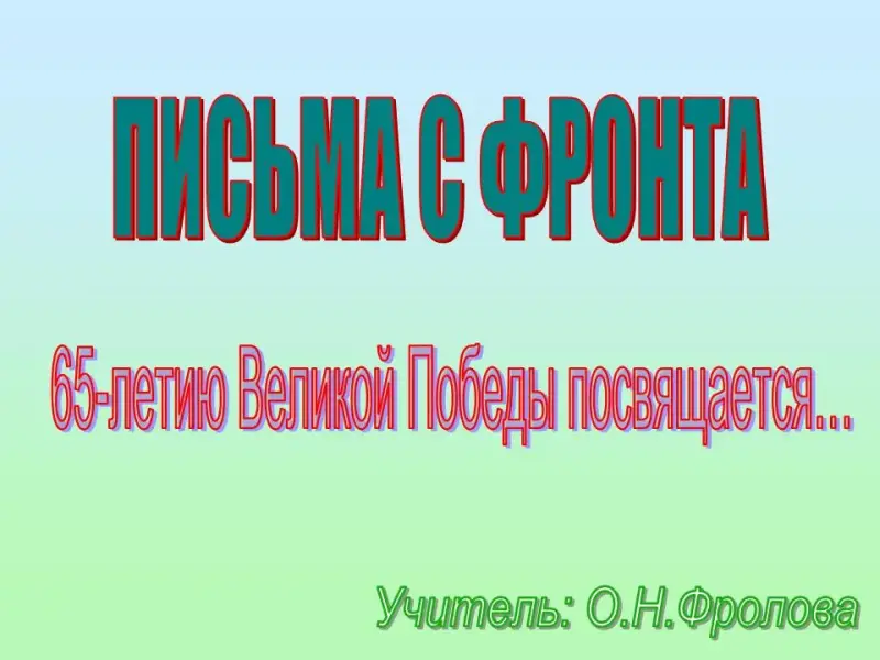 - В ХХ веке на долю нашего народа выпало немало испытаний. Одно из них - Вторая мировая война, изменившая судьбы миллионов людей. О том, что переживали они, чувствовали, с какими огорчениями, заботами и радостями встречались, - «говорят» нам письма военного времени. Письма с фронта... Пожелтевшие треугольники, исписанные неровными солдатскими почерками. Их писали днем в окопах, пользуясь передышками между кровавыми боями, ночью в холодных землянках, когда, несмотря на усталость, никак не удавалось уснуть и перед глазами всплывали родные любимые лица... Письма-прощания, письма-напутствия, письма-размышления... (СЛАЙД 16)