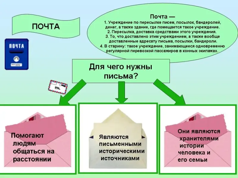 - Ребята, а вы бывали на почте? Что интересного вы там видели? Как вы думаете, помогает ли почта общаться с окружающим миром? Что вы можете рассказать о работе почты?