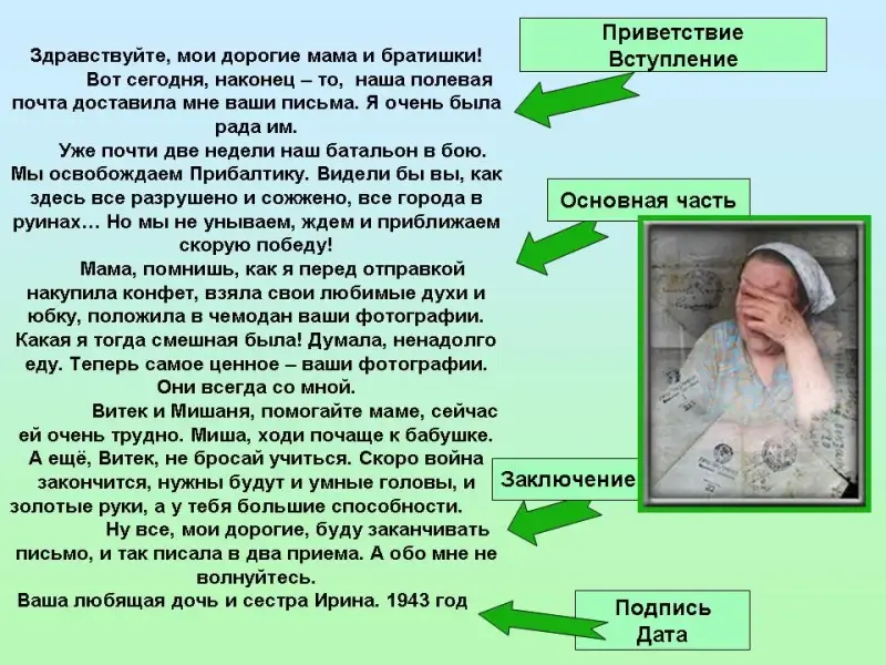 - Прочитайте письмо с фронта. Попробуйте определить структурные особенности.