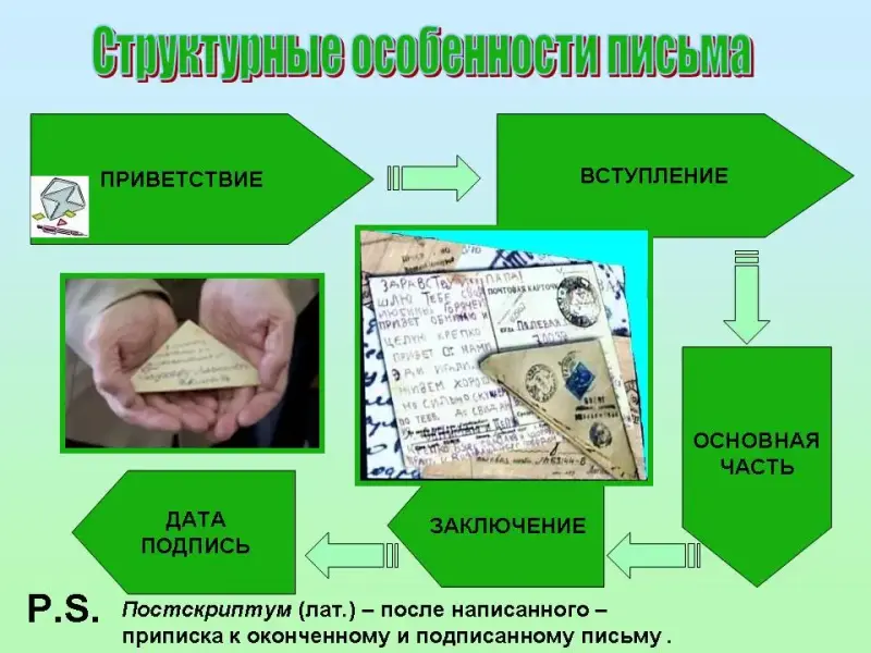 - Письмо не должно содержать различного рода вставок между строк (или надписей на полях); если вам необходимо добавить важную информацию, напишите post scriptum, а затем - нужную информацию и инициалы своего имени.