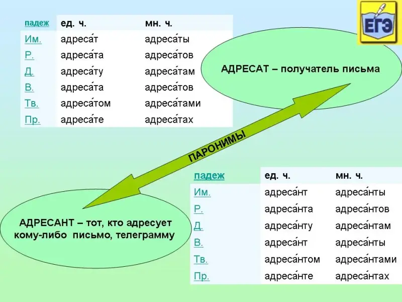 (Слайд 24) - склонение слов АДРЕСАТ и АДРЕСАНТ (подготовка к ЕГЭ)