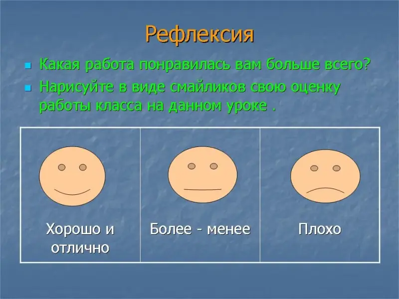 - Дайте с помощью смайликов оценку совместной работы всего класса на уроке (приложение 9)