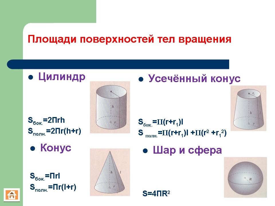 5)Решить задачи на нахождение площадей поверхностей тел вращения.