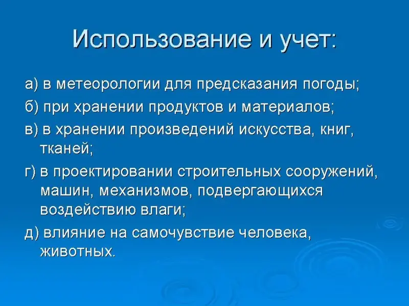 - Значение влажности воздуха в быту, природе и технике.