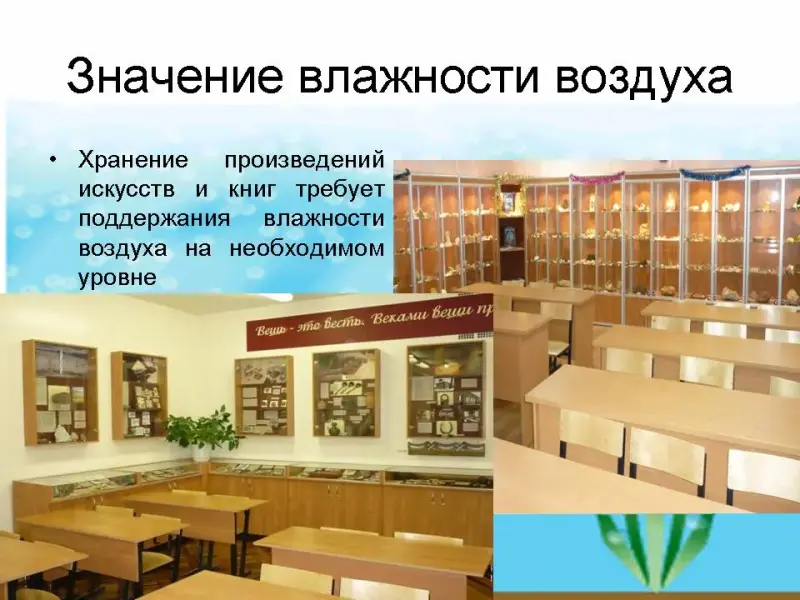 - Влияние влажности на хранение книг, исторических достопримечательностей и др. в разных уголках Земли.
