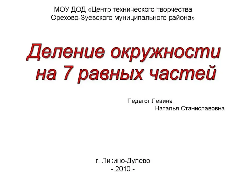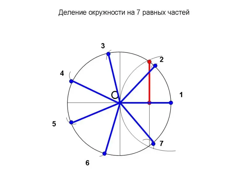 Вы уже умеете делить окружность на 2, 3, 4, 6, 8 и 12 равных частей при помощи циркуля, а сегодня мы с вами научимся делить окружность на 7 равных частей.