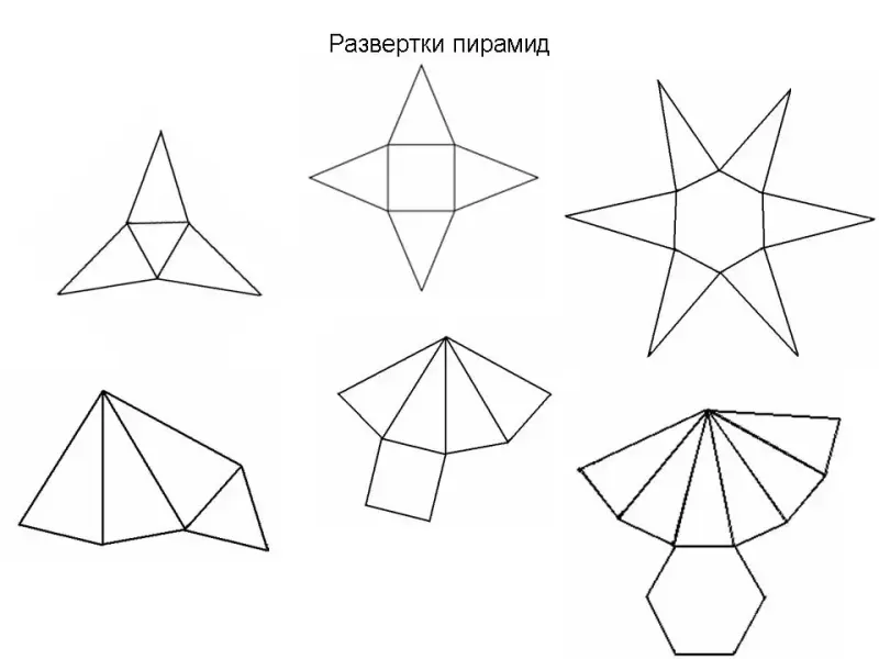 Нарисуйте разные варианты разверток 3- 4-6 угольных пирамид. Слайд 3