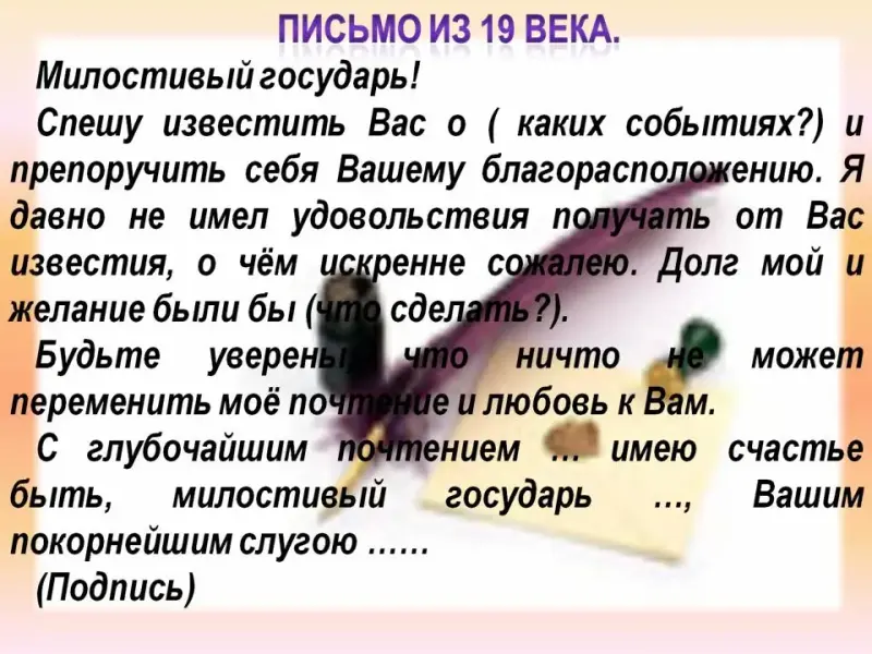 Задание № 2. Письмо из 19 века.